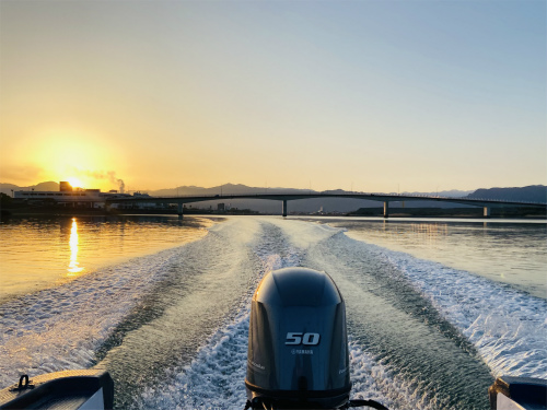 冒険の旅立ちを祝福するかのようなライジングサン。